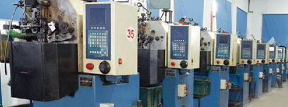 并先后引進各種型號電腦多功能彈簧萬能機,數控電腦卷簧機50余臺,數控彈簧雙端面磨床,連續式熱風回火爐等機械設備及各種規格彈簧拉壓試驗機,彈簧扭轉試驗機,彈簧疲勞試驗機,不同規格的探傷設備等